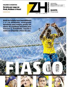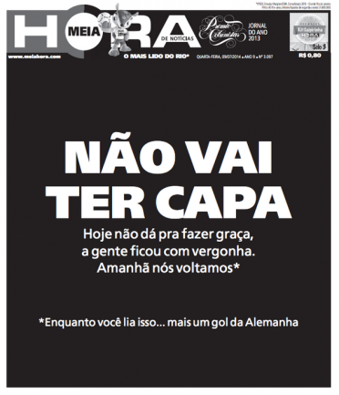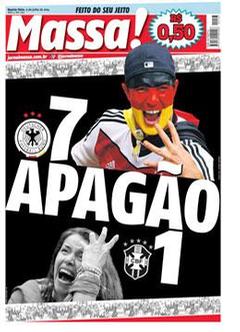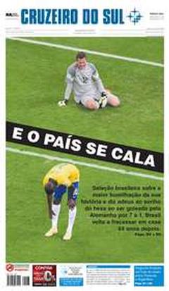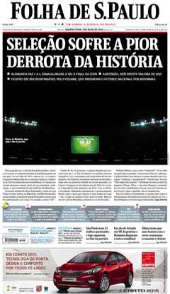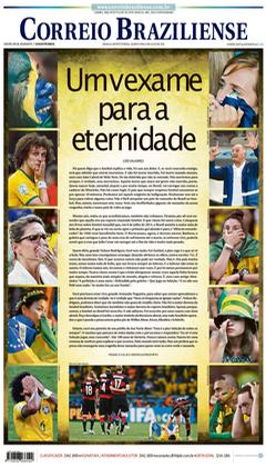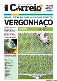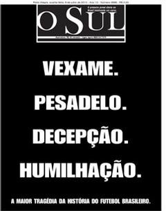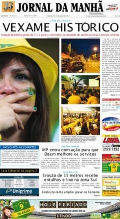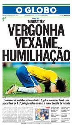 A derrota do Brasil frente à Alemanha por 1-7 está na ordem do dia. As capas dos jornais brasileiros de hoje falam em vergonha, humilhação, dor… Um resultado inacreditável deu origem a capas mais ou menos originais, mas todas elas expressam a tristeza dos brasileiros, depois da derrota.