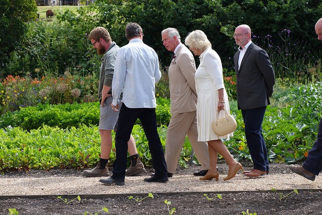 No “River Cottage”, onde também funciona uma escola de culinário, Carlos e Camilla foram recebidos por Hugh Fearnley-Whittingstall, que fez uma visita guiada pelo espaço, nomeadamente os jardins.