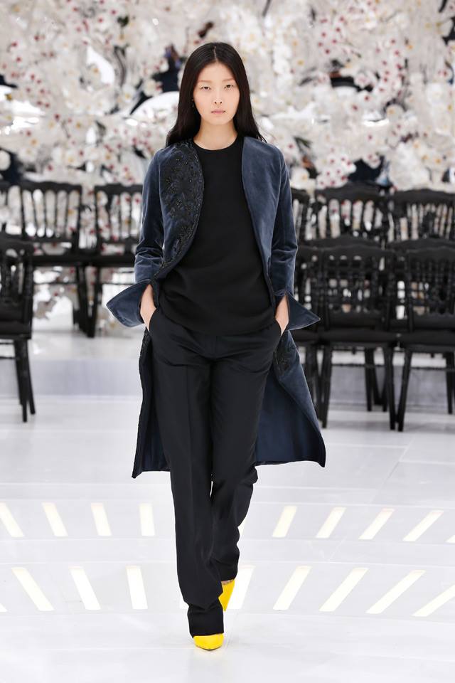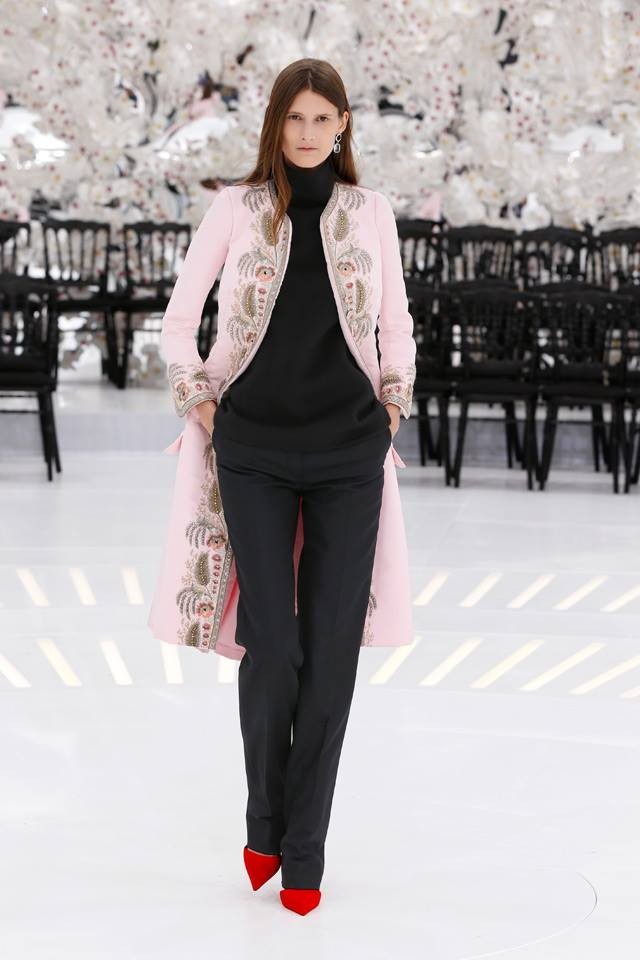 O desfile, que decorreu no Museu Rodin, apresentou uma mistura de vestidos com armação inspirados no século 18 e coletes masculinos ornamentados. Outra das apostas recaiu sobre os longos casacos escuros com colarinhos ornados semelhantes àqueles usados na corte de Luís XIV. Sapatos de salto agulha brilhantes deram um toque moderno aos modelos.