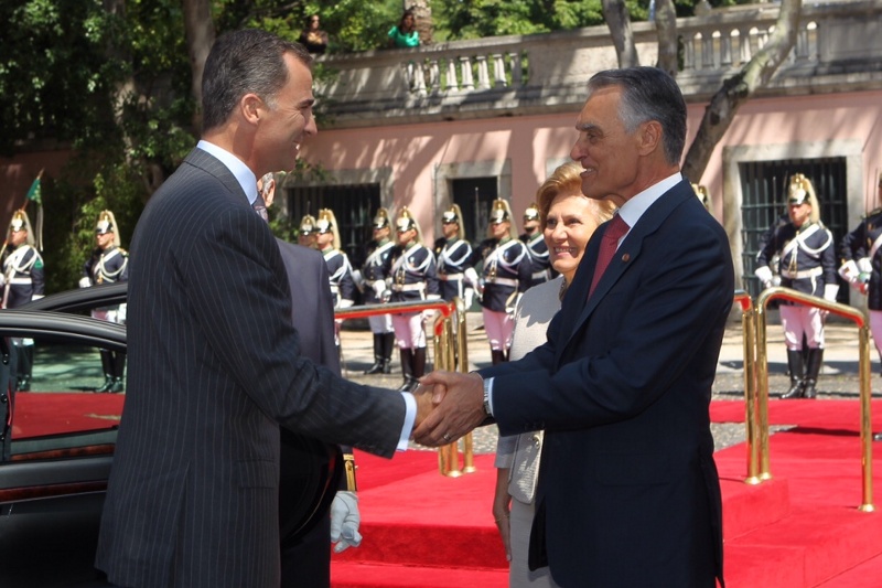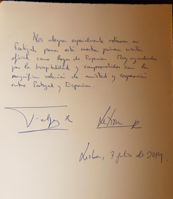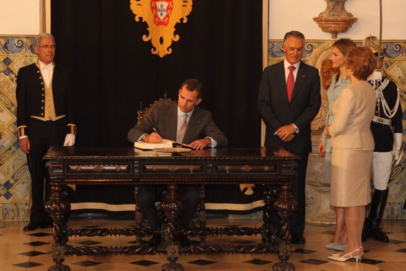 Os reis foram recebidos no Palácio de Belém. Ainda no exterior, foram prestadas as honras militares a Felipe VI, ouviram-se os hinos de Espanha e Portugal e o rei passou revista à Guarda de Honra. Acompanhados por Maria e Aníbal Cavaco Silva, os soberanos espanhóis entraram depois para o Palácio de Belém, onde assinaram o Livro de Honra, antes de se terem reunido em privado.