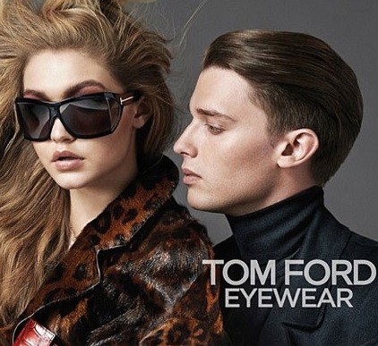 Patrick Schwarzenegger, de 20 anos, é o protagonista da nova campanha de eyewear da Tom Ford, ao lado da manequim Gigi Hadid.