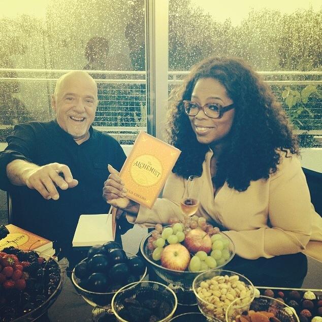 A famosa apresentadora americana Oprah Winfrey publicou na sua página no Facebook, este sábado (26), uma foto com o autor Paulo Coelho. Oprah aparece sentada ao lado do escritor brasileiro, com uma cópia de “O alquimista” em inglês, provavelmente autografada por Paulo Coelho que aparece com uma caneta na mão.