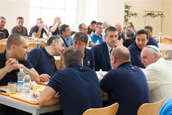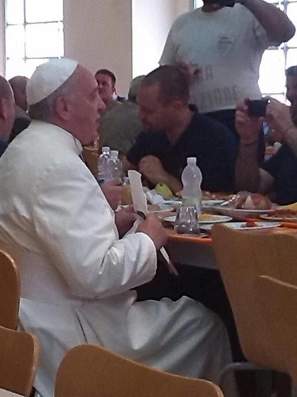 As atitudes simples do Papa Francisco continuam a surpreender. Esta sexta-feira, o líder da Igreja Católica foi “apanhado” pelo vaticanista Gianluca Barile a almoçar no refeitório com alguns funcionários do Vaticano e outros padres. Gianluca não resistiu e partilhou as imagens no Twitter.