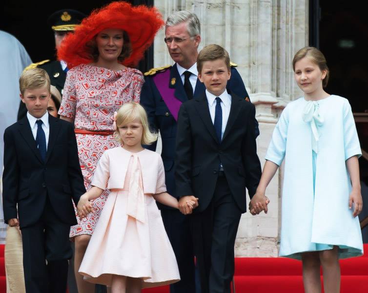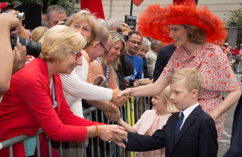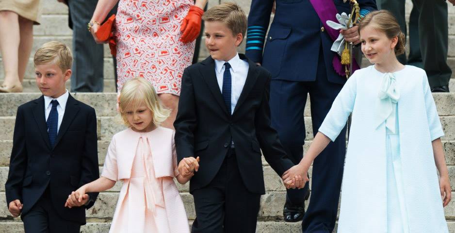 Os filhos do casal real – Elisabeth, de 13 anos, Gabriel, de 10, Emanuel, de oito, e Eleonore, de cinco, – cumprimentaram ao lado dos pais os cidadãos e tornaram-se o centro das atenções.