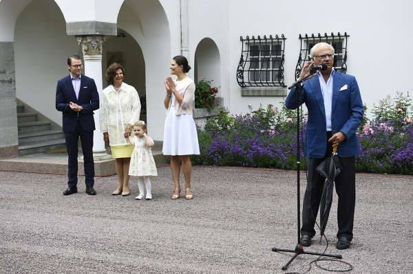 A princesa esteve nos jardins a receber as felicitações e presentes, acompanhada do marido, Daniel, da filha, Estelle, e dos pais, os reis Carlos Gustavo e Sílvia.