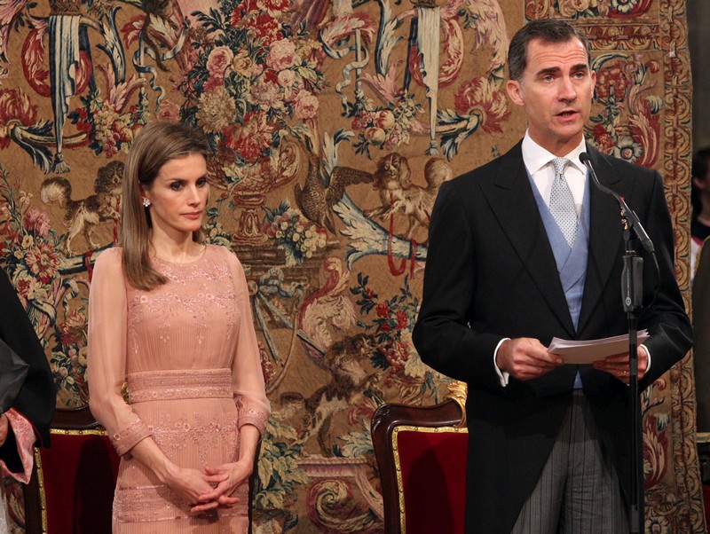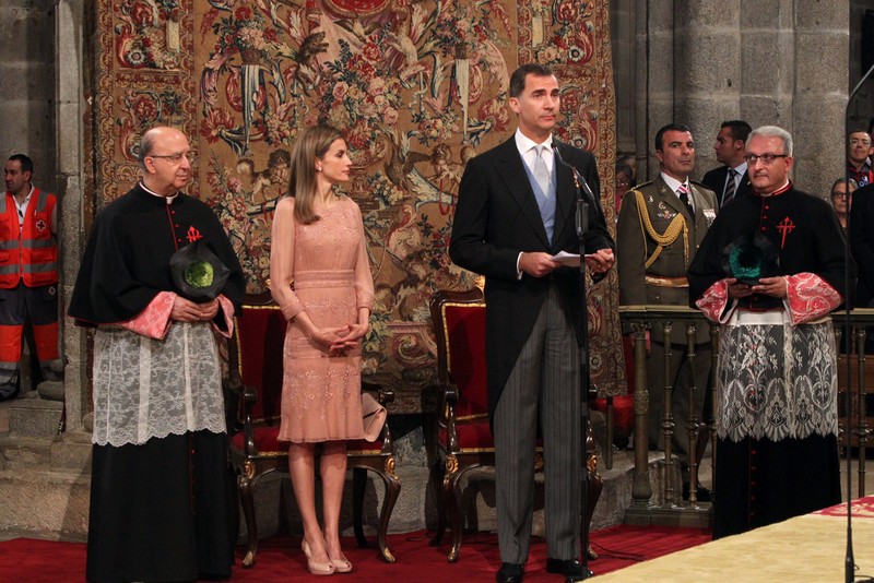 Para a ocasião a rainha repetiu um look Felipe Varela. Letizia optou pelo mesmo vestido que usou no casamento do príncipe William e Kate Middleton.