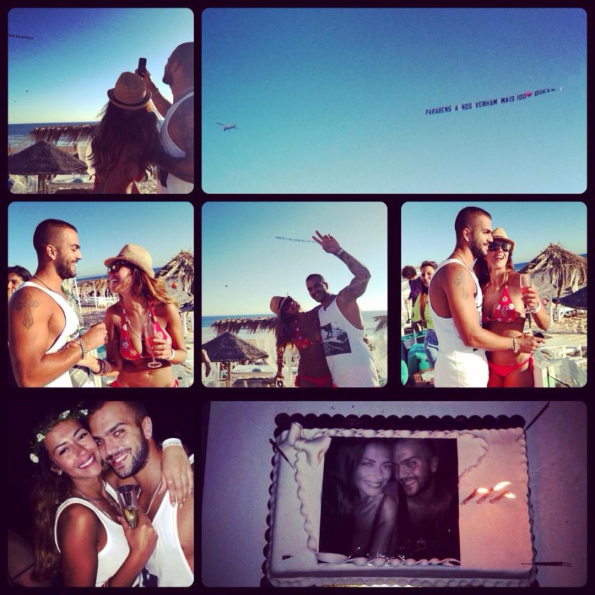 A atriz está a comemorar o 1º aniversário de namoro com Rúben da Cruz. Para assinalar a data, Sofia Ribeiro preparou uma surpresa e enviou um avião com uma mensagem muito especial para o empresário: “Parabéns a nós. Venham mais 100”.