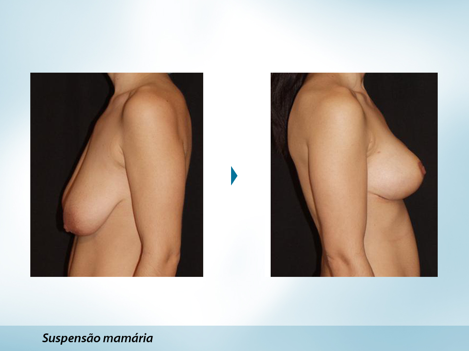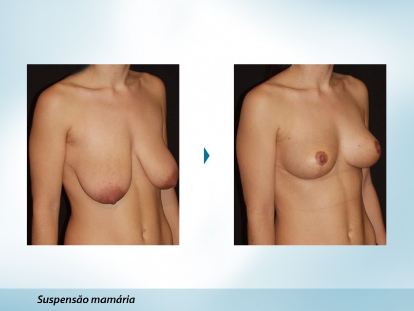 Embora não seja comum, a suspensão mamária, como qualquer outro ato operatório, pode apresentar complicações como cicatriz hipertrófica, diminuição de sensibilidade mamilar, hematoma, deiscência de sutura, infecção e necrose da pele. Qualquer que seja o tipo da complicação, é importante ter calma e compreensão, confiando ao médico a responsabilidade pela solução do problema. Comentários com amigos ou pessoas da família, alem de não ajudar, podem criar uma situação de intranquilidade e de descrédito. O surgimento de algum dos problemas acima mencionados faz parte do chamado “risco calculado”, que se aplica a todo tipo de cirurgia. A sua ocorrência, felizmente, não é frequente e não costuma comprometer os resultados definitivamente.