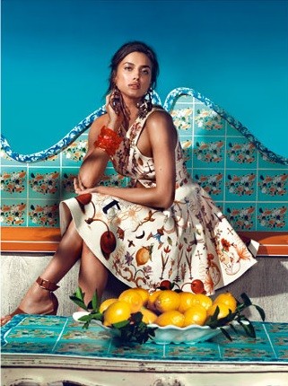 A manequim russa protagoniza a campanha de verão 2015 da Triton, marca para a qual desfilou na última semana da moda de São Paulo. Irina Shayk posou ao lado do modelo Evandro Soldati.