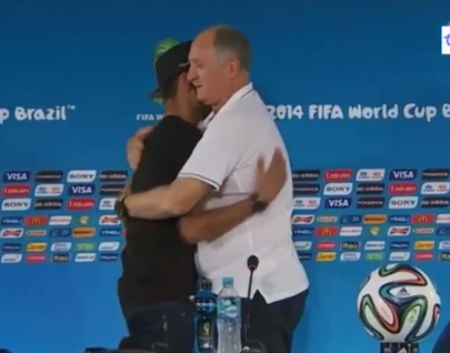 O avançado brasileiro Neymar está lesionado e não disputou as últimas duas partidas da seleção do Brasil que corresponderam a duas pesadas derrotas. Ainda assim, e apesar da contestação a Scolari, o jogador do Barcelona fez questão de mostrar o seu apoio ao técnico e ontem interrompeu a conferência de imprensa para abraçar o Felipão.