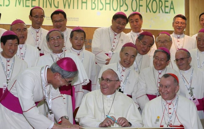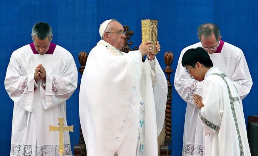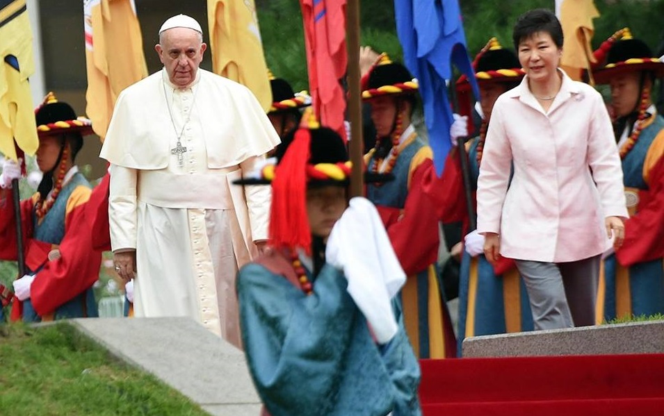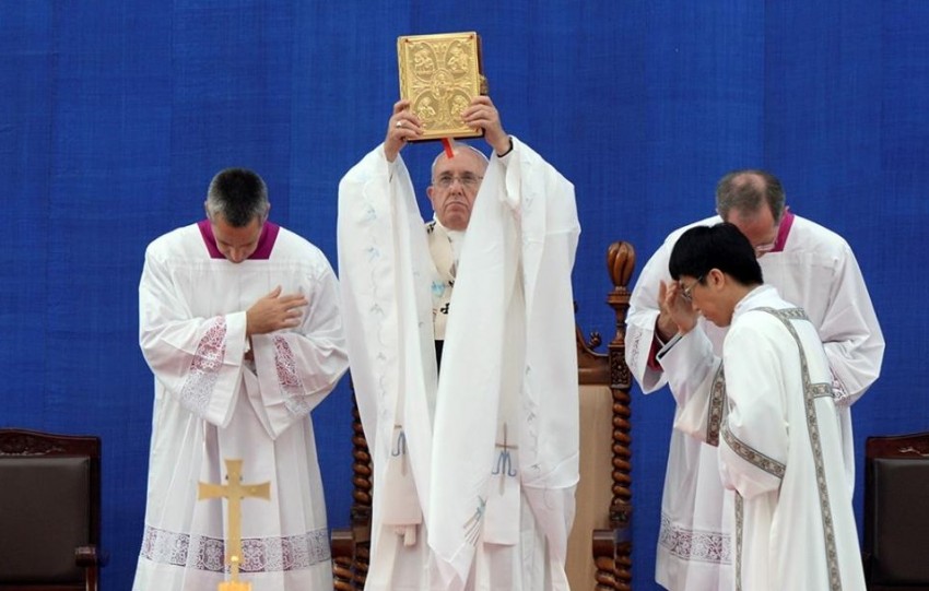 Entre os participantes na homilia estavam 38 sobreviventes e familiares das vítimas do naufrágio do ferry Sewol, que em abril causou a morte de cerca de 300 pessoas, a maioria estudantes sul-coreanos.