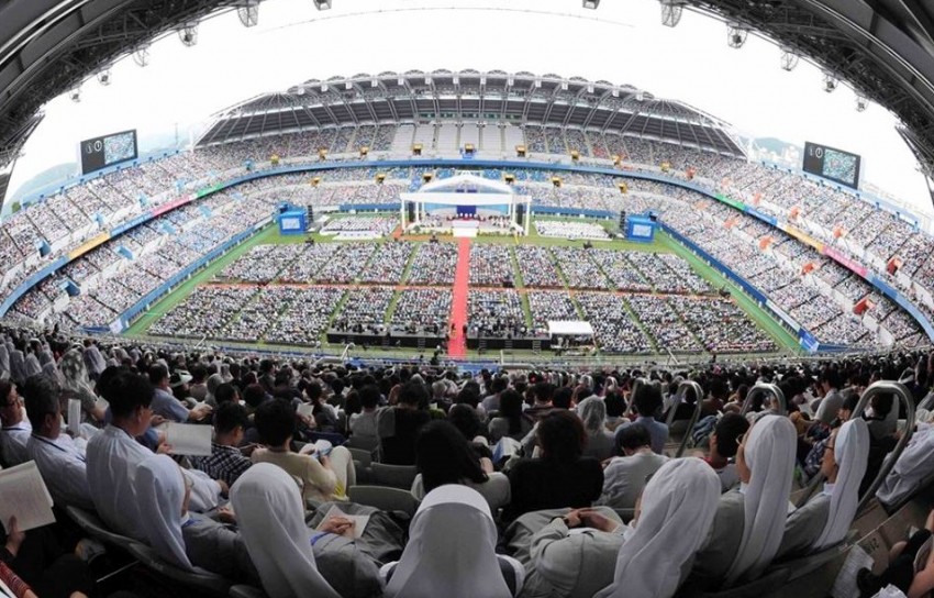 A missa decorreu no estádio de Daejeon, a cerca de 160 quilómetros a sul da capital sul-coreana, no primeiro evento público do papa que chegou na quinta-feira a Seul.