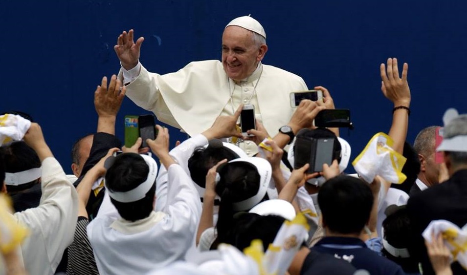 O papa Francisco advertiu hoje para o “cancro do desespero” que aflige as sociedades materialistas e pediu aos católicos sul-coreanos para rejeitarem “modelos económicos desumanos”, numa missa celebrada para 45 mil fiéis, na primeira visita papal à Ásia em 15 anos.