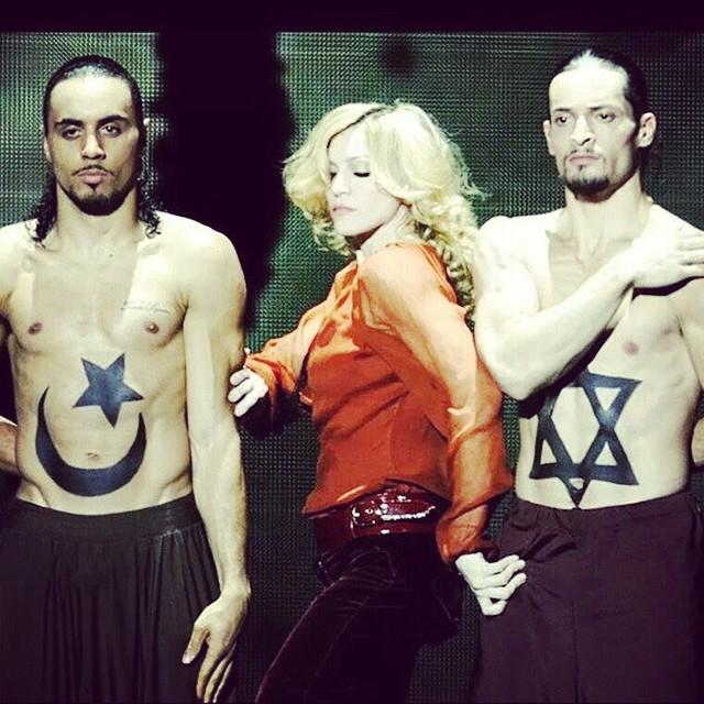 Uma fotografia de Madonna está novamente a gerar controvérsia. Desta vez, a artista apareceu em público juntamente com dois dançarinos sem camisola e com símbolos muçulmanos e judaicos pintados no peito.