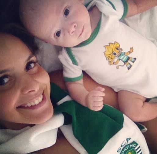 Com o cachecol verde e branco ao pescoço e o filho do casal, Santiago, de três meses, vestido com a mascote dos leões marcada na roupinha, a instrutora de dança tirou uma “selfie” de incentivo a Adrien Silva.