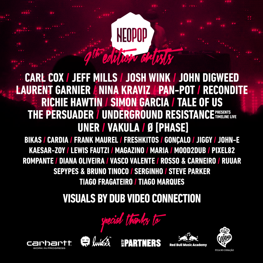 Carl Cox, Richie Hawtin, Laurent Garnier, Jeff Mils são algumas das “lendas vivas” que vão passar pelo festival Neopop que vai decorrer entre 14 e 16, em Viana do Castelo, disse à “Lusa” fonte da organização.