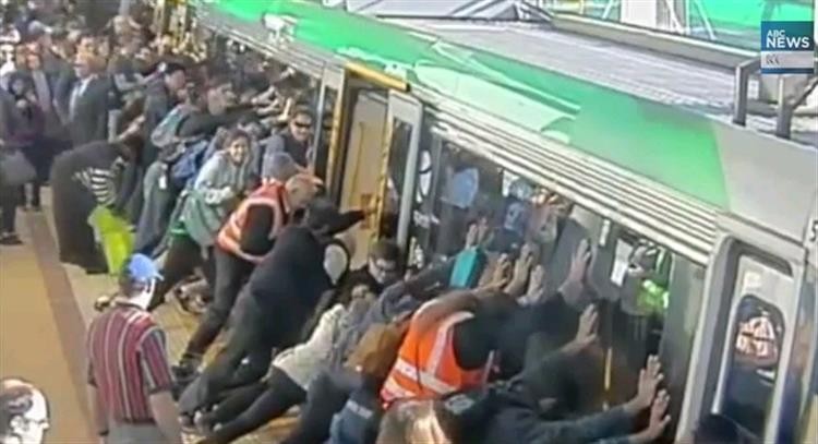 Dezenas de australianos abanaram esta quarta-feira, dia 6, um comboio da cidade de Perth para libertar uma pessoa que tinha a perna presa entre a linha e a carruagem.