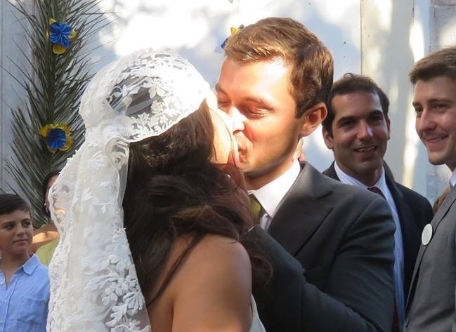 A atriz partilhou no Facebook uma foto onde aparece a trocar um beijo apaixonado com o marido no dia da cerimónia.
