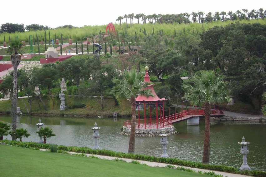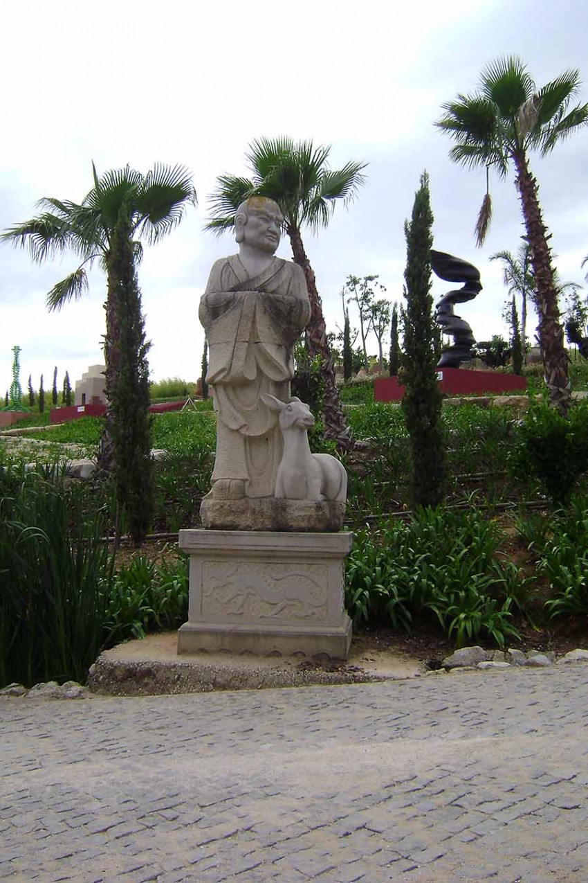 A escadaria central é o ponto focal do jardim, onde os buddhas dourados dão lhe as boas-vindas. Já no lago central é possível observar os peixes KOI. Terá ainda a oportunidade de ver de perto os 700 soldados de terracota pintados à mão.