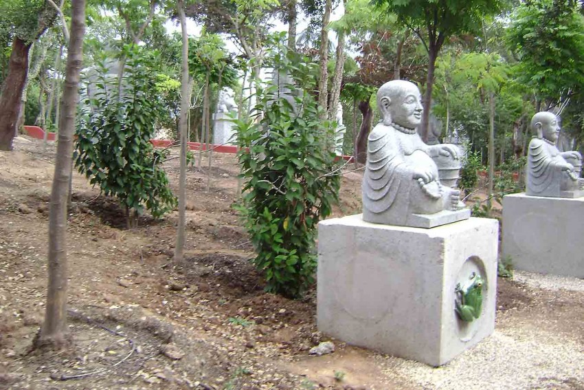 Entre budhas, pagodes, estátuas de terracota e várias esculturas cuidadosamente colocadas entre a vegetação, estima-se que foram usadas mais de 6 mil toneladas de mármore e granito para edificar esta obra.