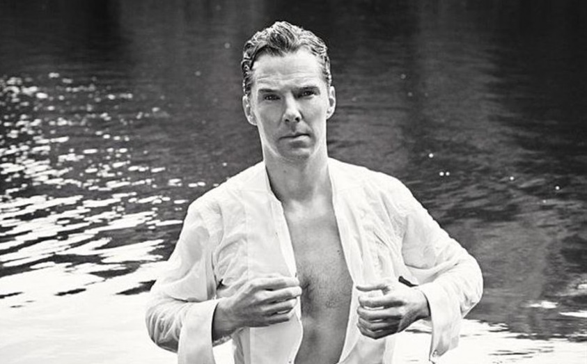 A estrela de Sherlock Holmes mostra-se num lago com uma camisa branca aberta numa imitação da famosa cena protagonizada por Colin Firth no papel de Mr. Darcy, na minissérie “Orgulho e Preconceito” de 1995, da BBC. O ator posou para a lente do fotógrafo Jason Bell por uma boa causa.