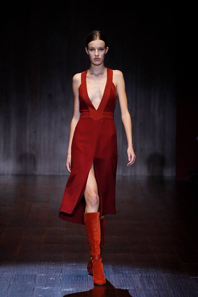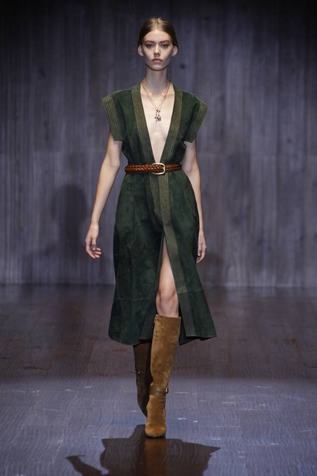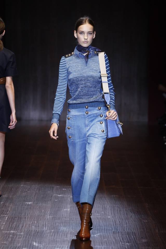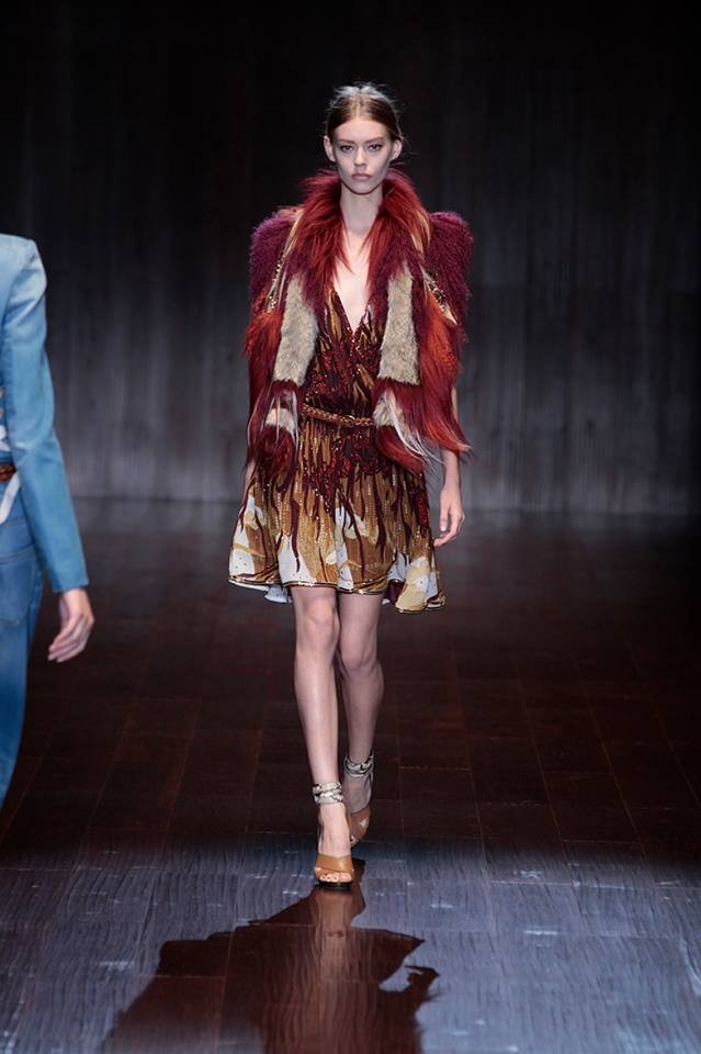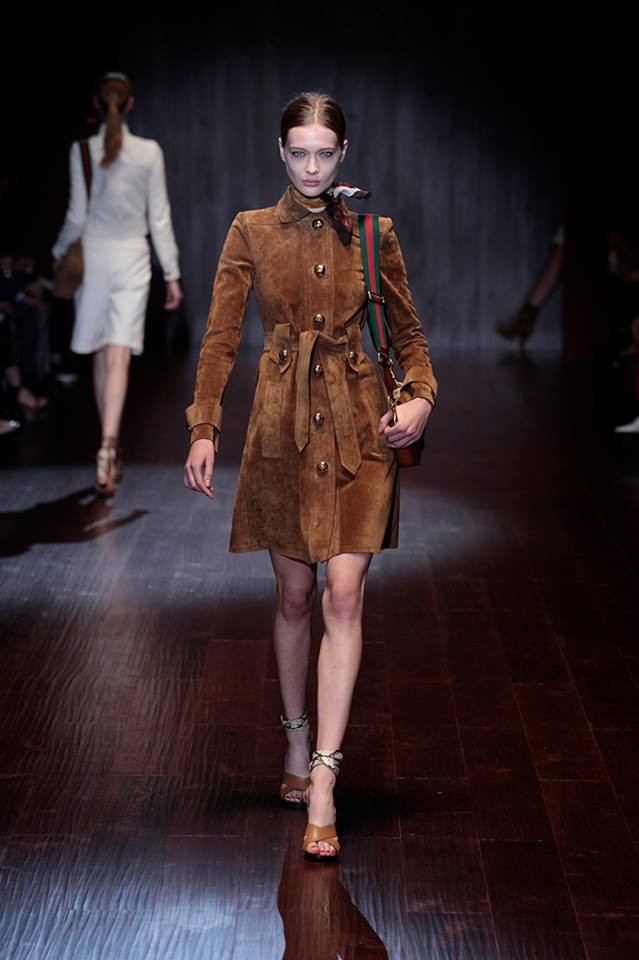 A Gucci apresentou a coleção primavera/verão 2015 na semana da moda de Milão. Na passerelle desfilaram propostas com inspiração nos anos 70.