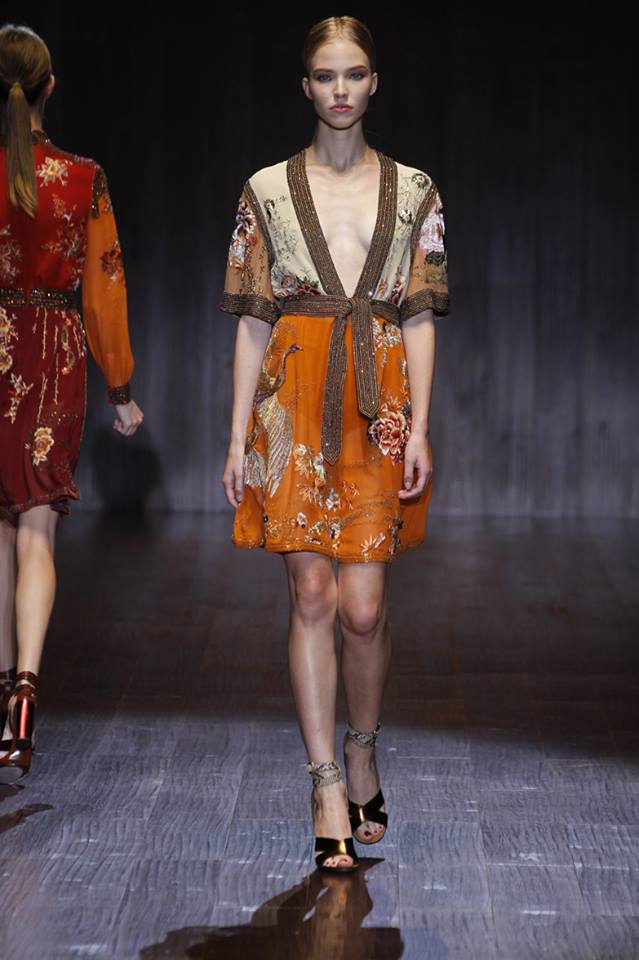 A Gucci apresentou a coleção primavera/verão 2015 na semana da moda de Milão. Na passerelle desfilaram propostas com inspiração nos anos 70.
