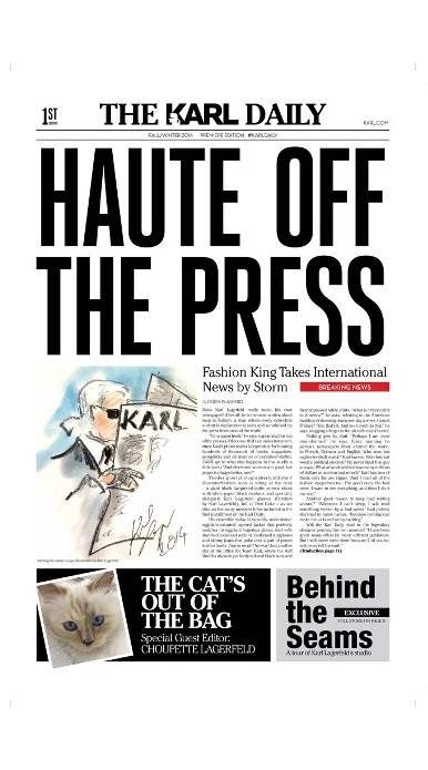 Depois da sua própria boneca Barbie, das suas garrafas Diet Coke, da sua versão do brinquedo My Little Pony e de muitos outros produtos, Karl Lagergeld lançará agora o seu próprio jornal: “The Karl Daily”. O conteúdo da publicação será todo em torno do seu mundo.