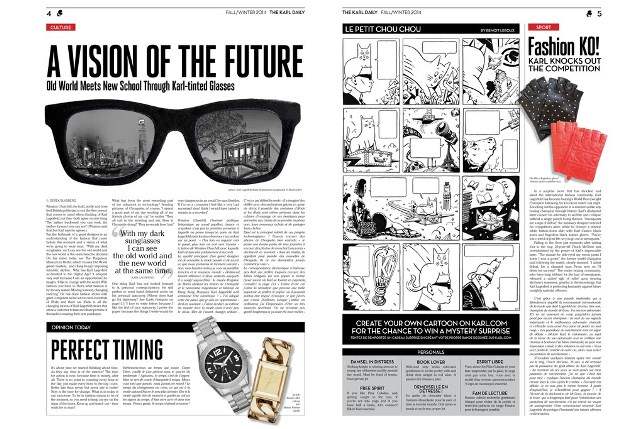 Este primeiro número incluirá entrevistas sobre colaborações, notícias sobre projetos futuros e sobre produtos. Fotografias de street style e uma banda desenhada também estarão presentes, bem como as campanhas publicitárias das várias marcas de Lagerfeld.