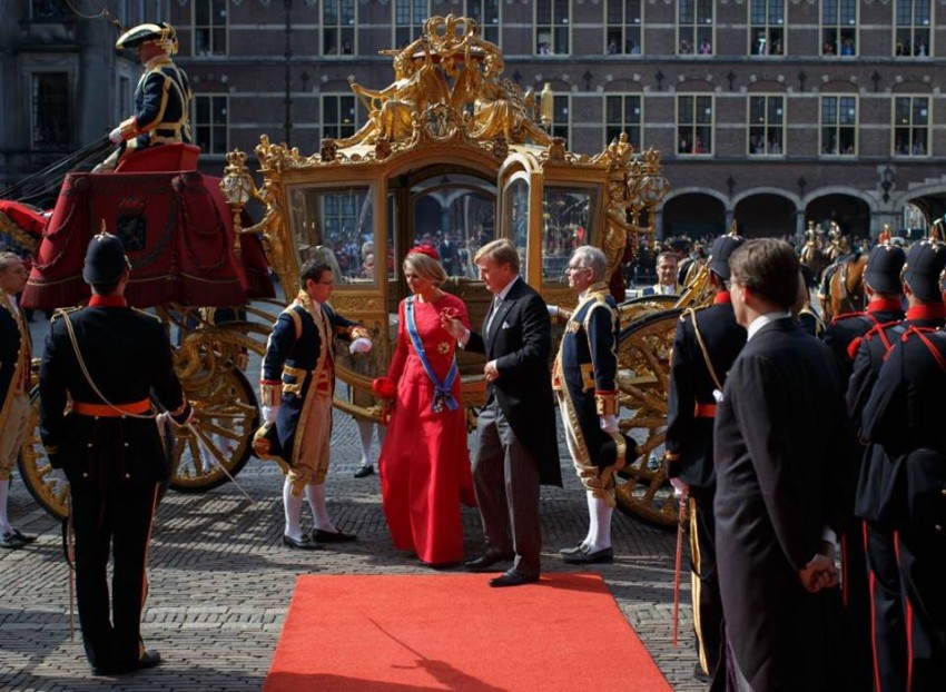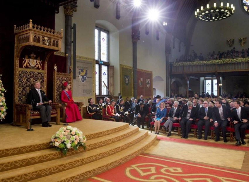 Os monarcas dirigiram-se ao parlamento, em Haia, numa carruagem de ouro, como é habitual. Na Sala dos Cavaleiros, Guilherme leu o discurso do trono. Este é um dia histórico para a Holanda, que remonta a 1887.