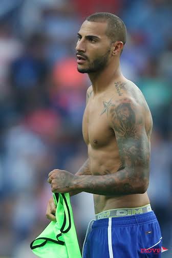 De tronco nu, à margem do encontro, Ricardo Quaresma exibiu as muitas tatuagens que inscreve no corpo e que são uma das suas imagens de marca, a par dos brincos e relógios vistosos.