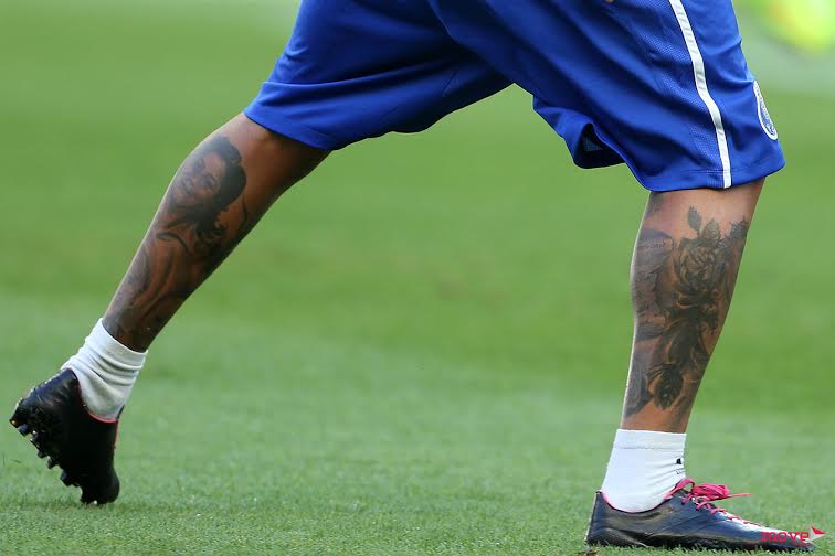No ombro esquerdo, vê-se Jesus Cristo, enquanto no oposto se destaca a Nossa Senhora, provando a fé do “Harry Potter” dos relvados.