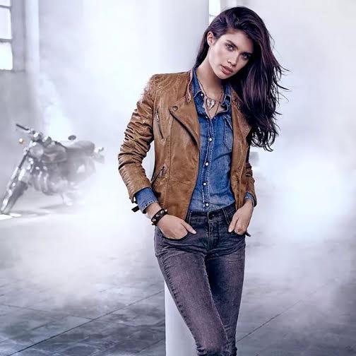 Perante a objetiva do fotógrafo Sergi Pons, Sara Sampaio posou de jeans e blusão de couro, uma das grandes sensações da estação.