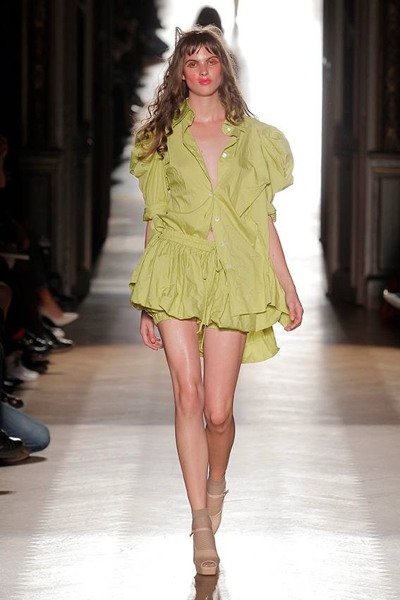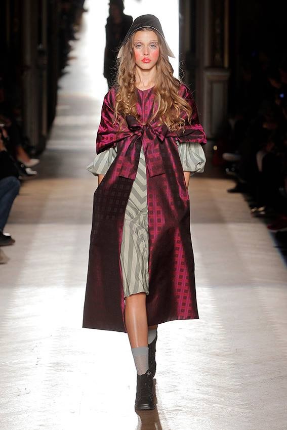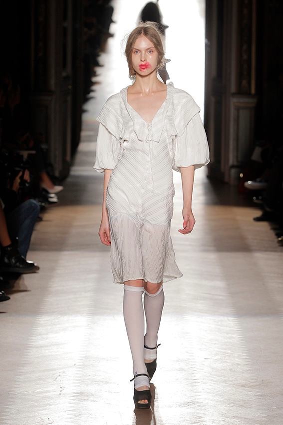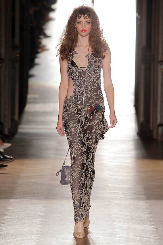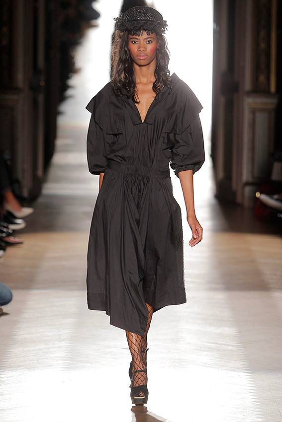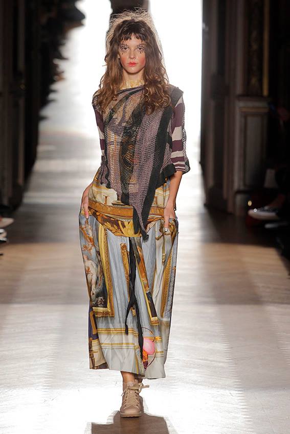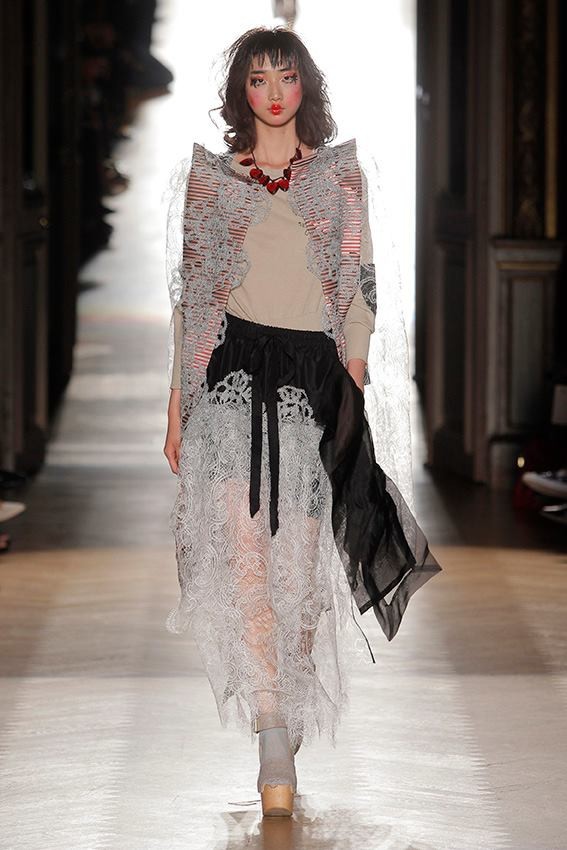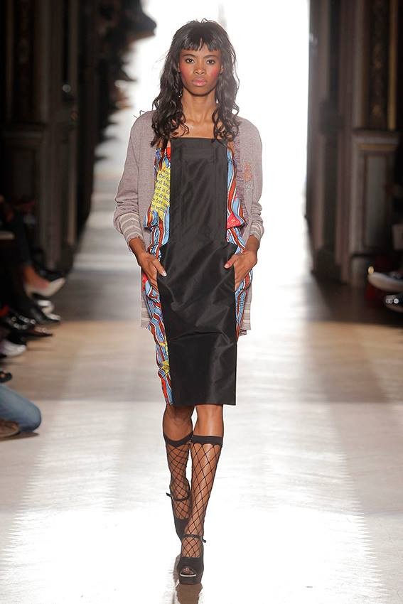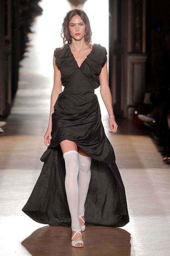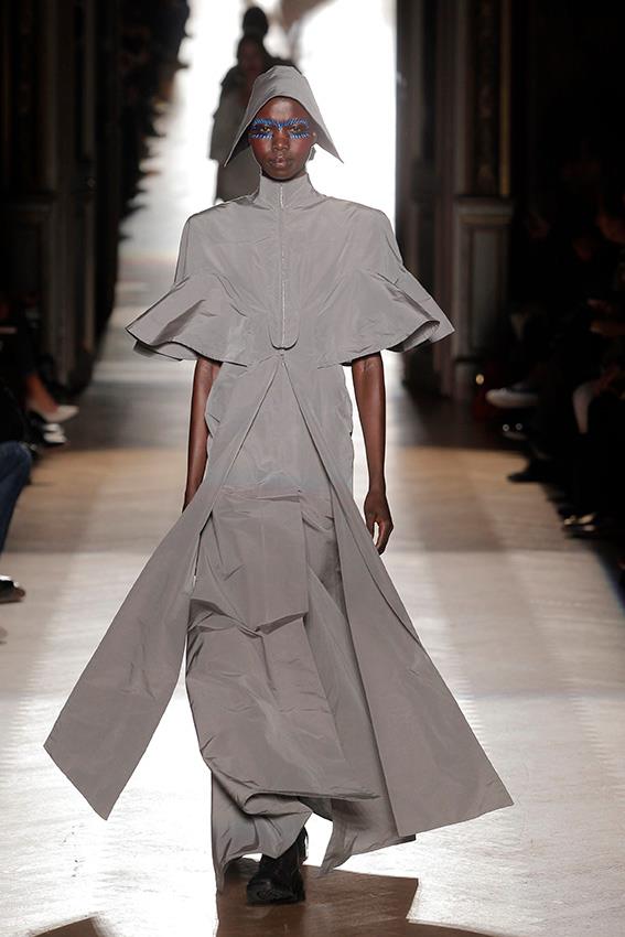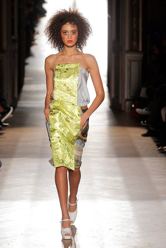 A estilista investiu em cortes assimétricos e as modelos desfilaram com maquilhagem esborratada, conferindo um toque de excentricidade ao desfile.