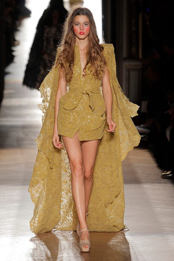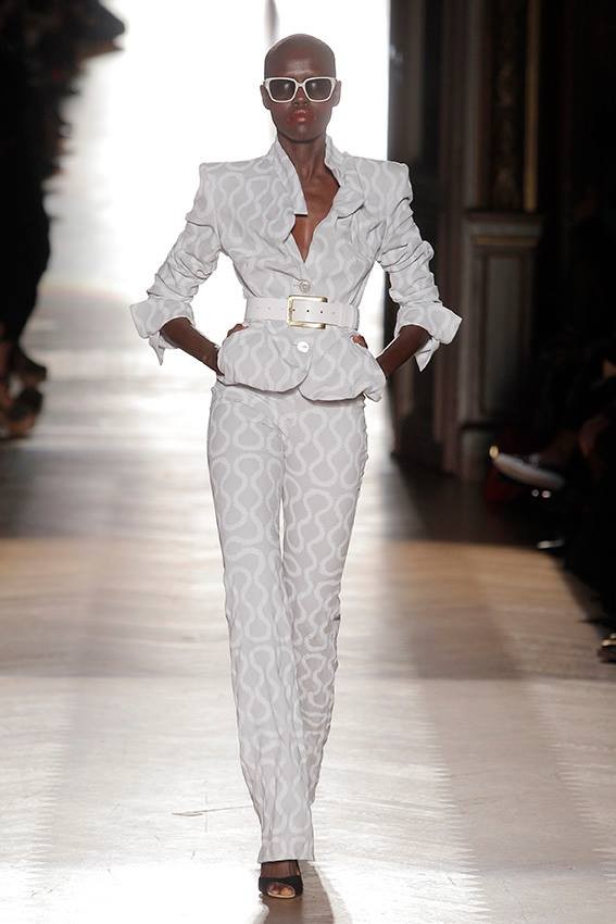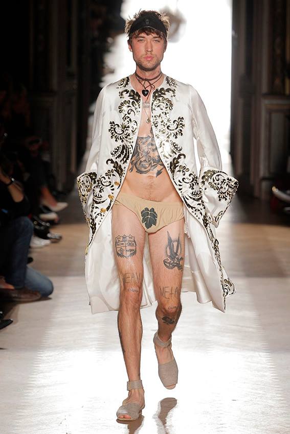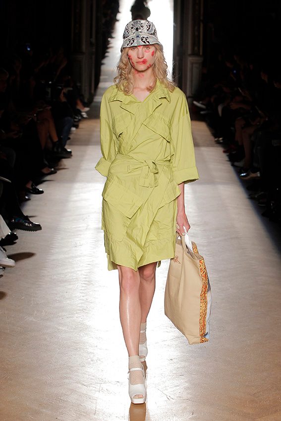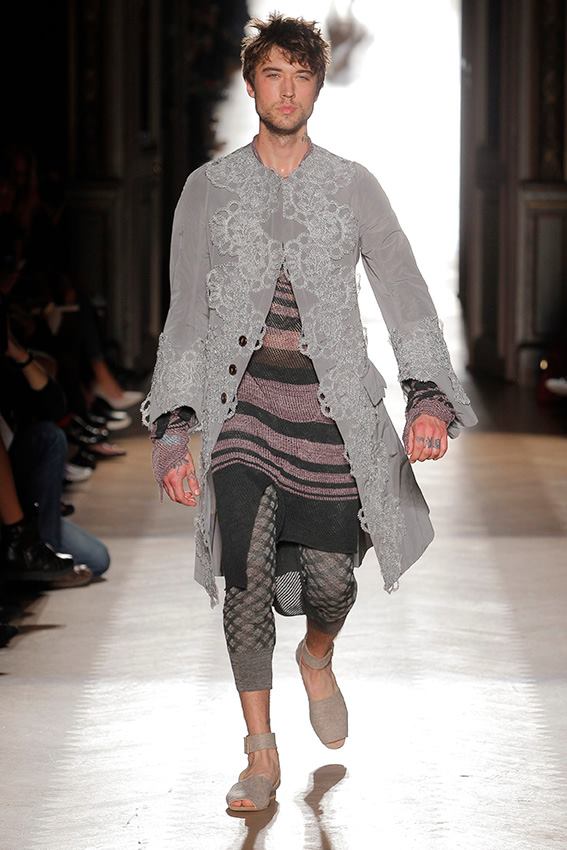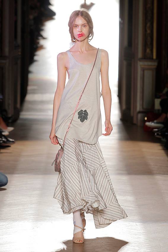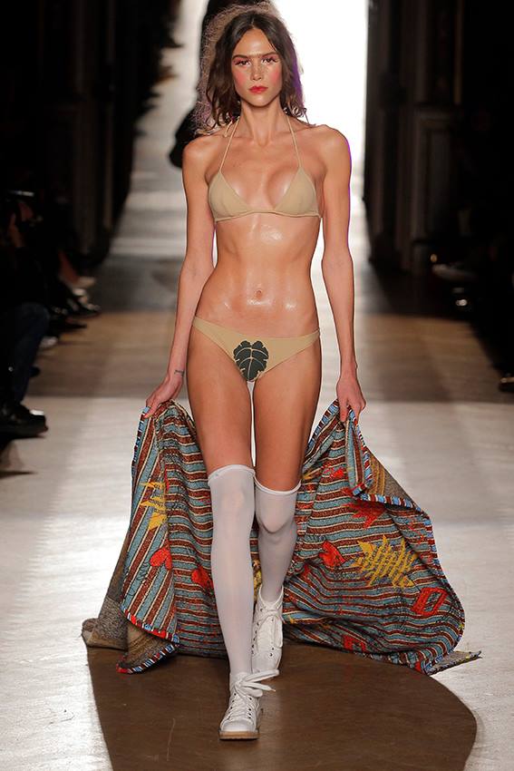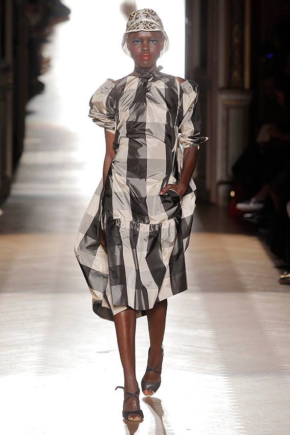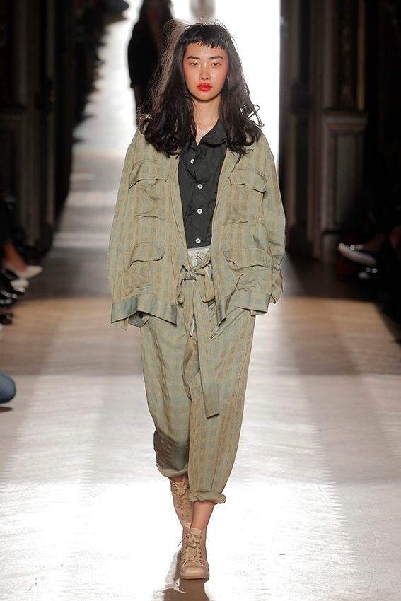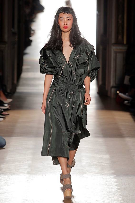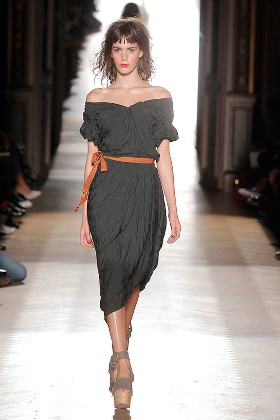 A estilista investiu em cortes assimétricos e as modelos desfilaram com maquilhagem esborratada, conferindo um toque de excentricidade ao desfile.