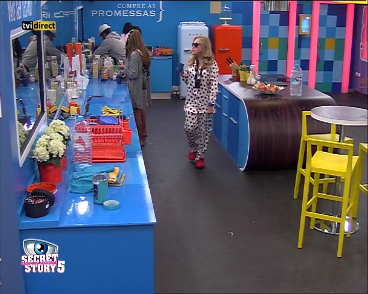 Teresa Guilherme acordou cheia de energia ao som da música “Única Mulher” de Anselmo Ralph. A apresentadora não se fez rogada e participou nas tarefas e atividades da casa, nomeadamente numa aula de Zumba de Elisabete.