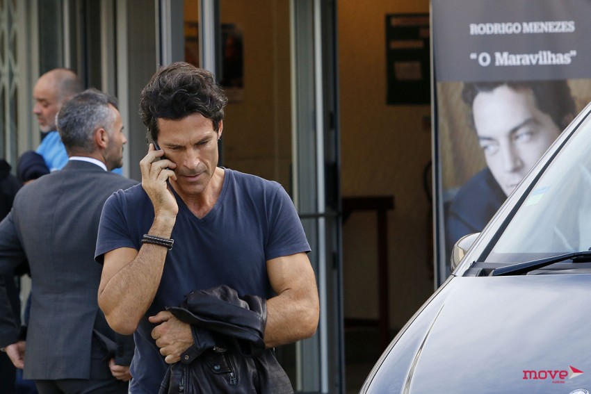 O ambiente vivido era de grande dor e tristeza. À saída da igreja ouviram-se aplausos enquanto o caixão que transportava Rodrigo Menezes, carregado pelos irmãos e um primo do ator, saia do local. Um cachecol do Sporting estava em cima do caixão, uma vez que o ator era um adepto do clube.