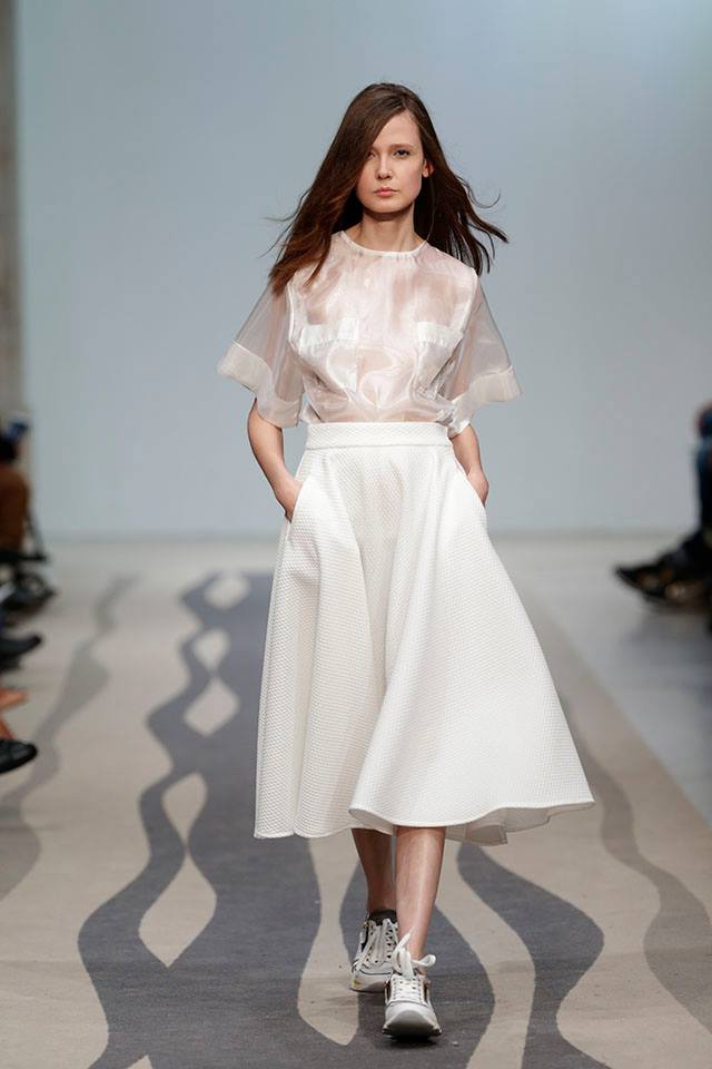 Nas cores, o criador optou pelo branco, o lavanda e o preto. Já nos materiais, escolheu trabalhar com tecidos estruturados com texturas geométricas, seda e cetim de seda.