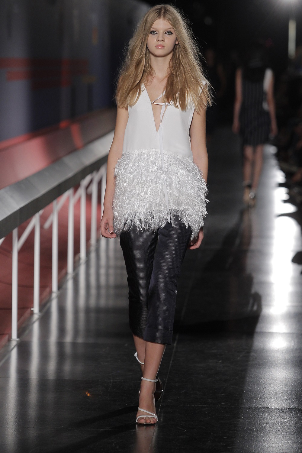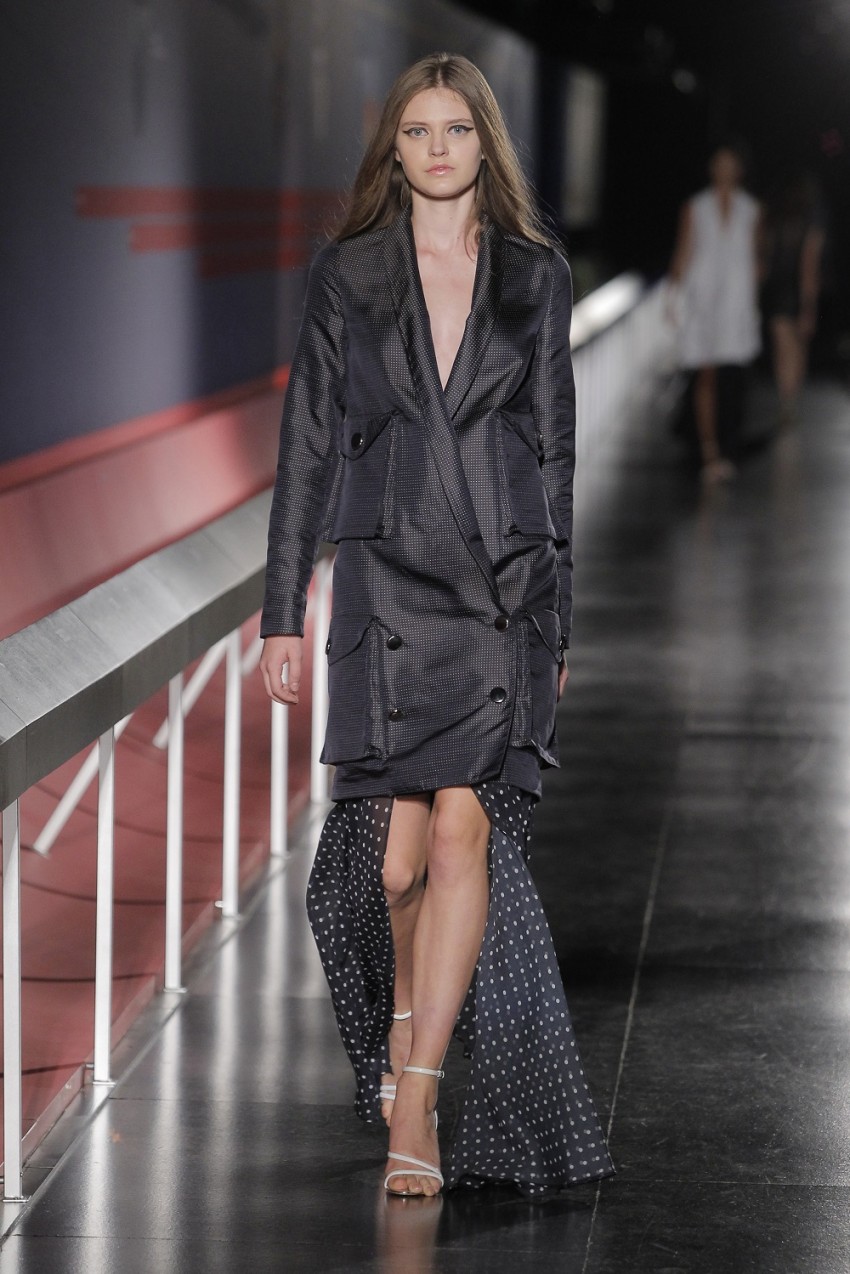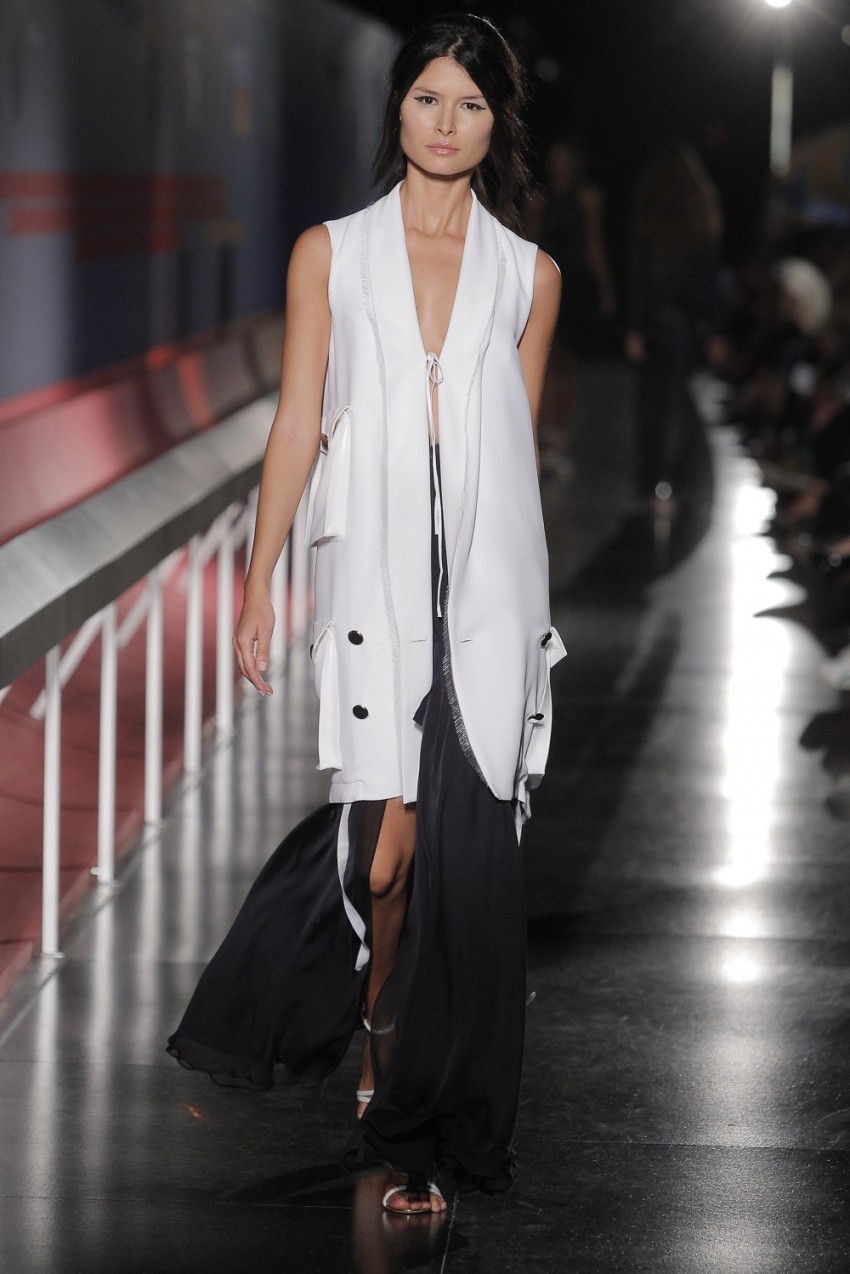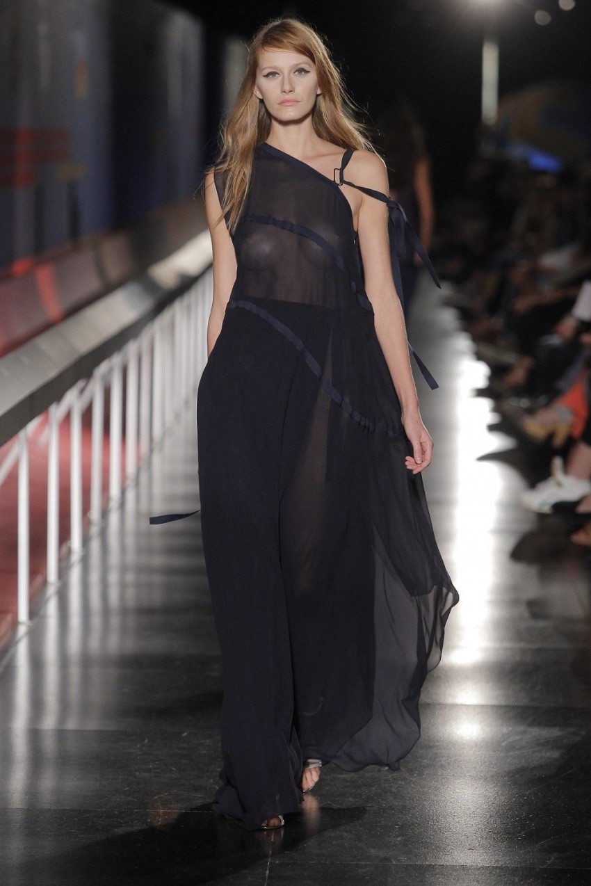 A pensar na mulher sofisticada, que se quer natural, usaram Chiffons, georgettes e crepes fluídos, sedas e organzas estruturadas, pormenores e aplicações de fitas e fivelas metálicas.