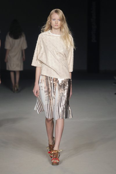 Em “Anywhere” “o sonho surge aliado ao lado positivo da vida”, explicou a estilista portuense. A combinar com este espírito estão os azuis em vários tons, misturas com prata e cinzas adormecidos, rosas claros, rosas pó de arroz, amarelos torrados e tons bege. Os brocados, as renas, os tules, os bordados em lantejoula e os tecidos às riscas deram vida às propostas de Anabela Baldaque.