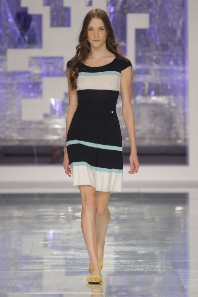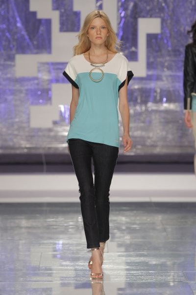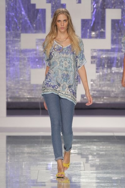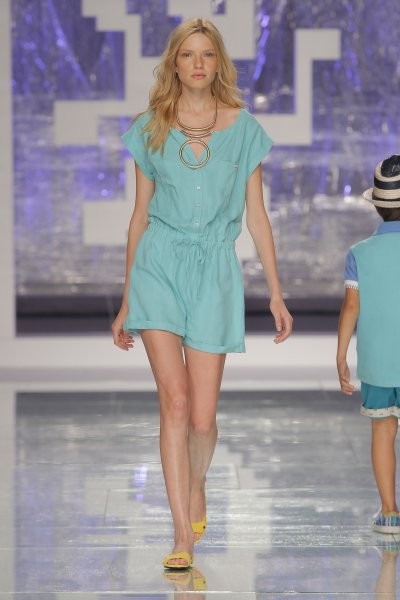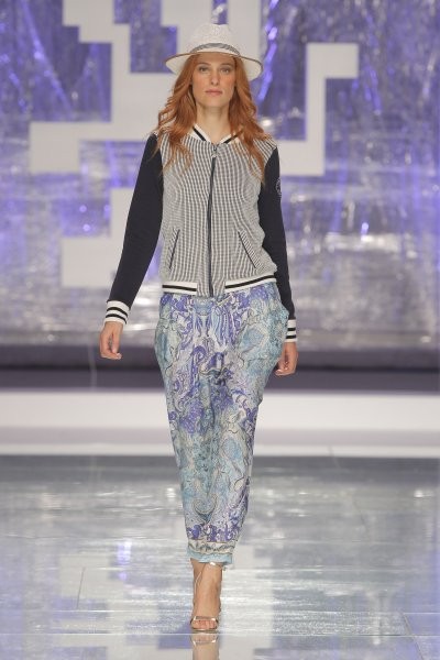 Os tons de azul (azul céu, denim, royal) e off-white, harmoniosamente misturados com o amarelo, laranja, verde e rosa, dão origem a um colorido fresco, inesperado e original. Riscas coloridas, estampados florais, micro jacquards, denims, linhos e sedas estão em evidência nesta estação, podendo ser misturados de várias formas graças à versatilidade da coleção.