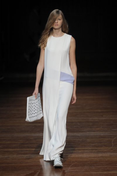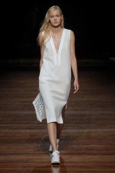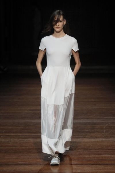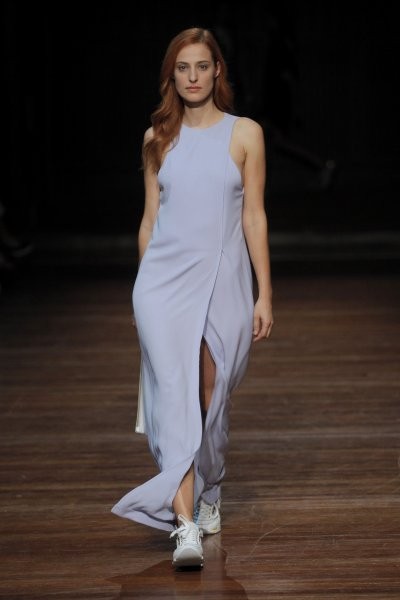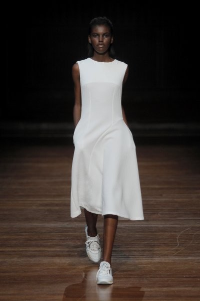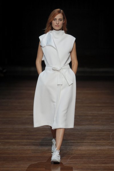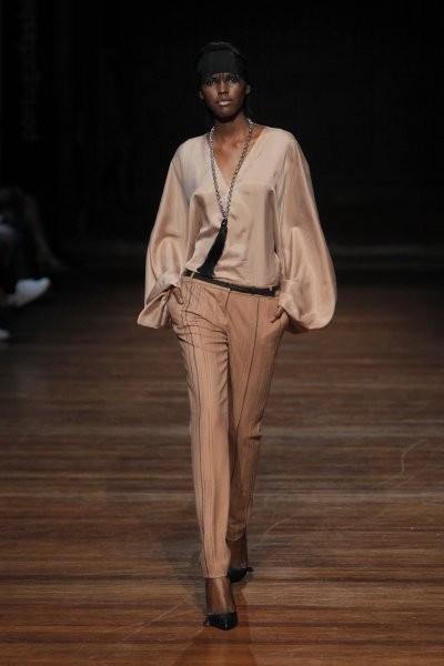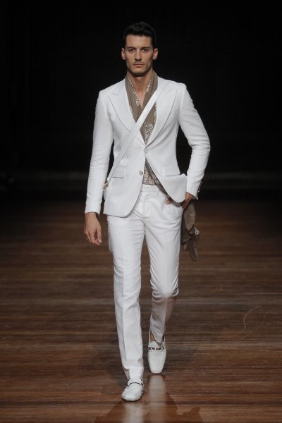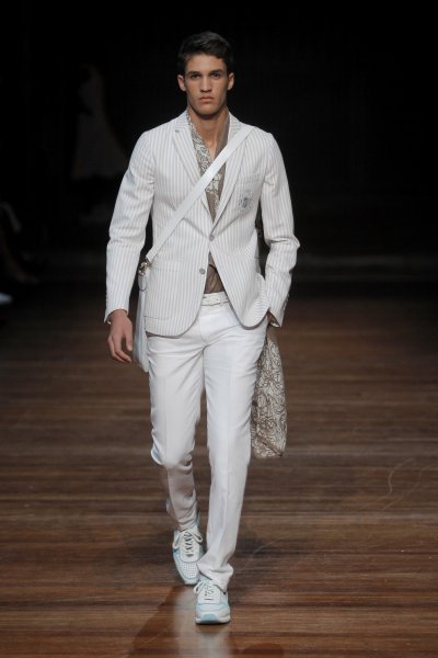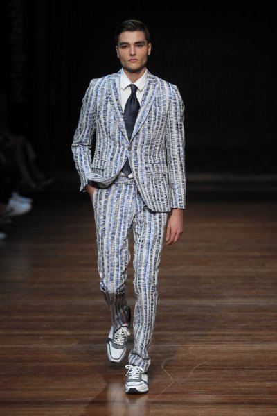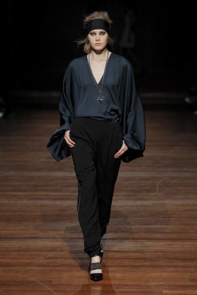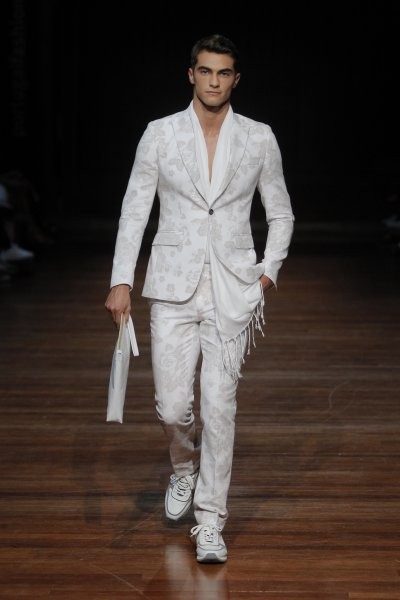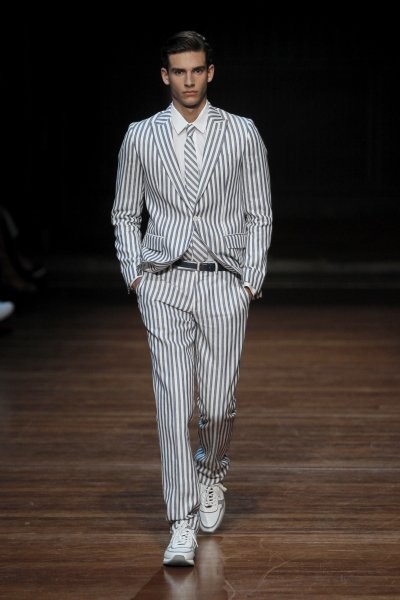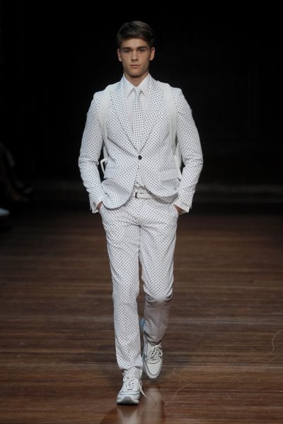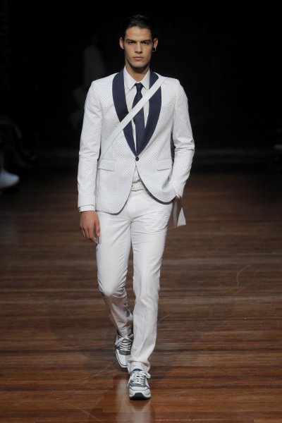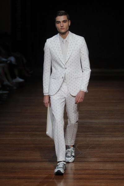 O criador apostou em tecidos com texturas geométricas, seda, cetim de seda, algodão, puras lãs virgens para conceber peças confortáveis. As sapatilhas chamaram à atenção na passerelle, assim como os detalhes de alfaiataria masculina. Nada foi deixado ao acaso e foram muitos os que assistiram ao desfile que ficaram de olho nas mochilas, nas clutch e sapatos luva.