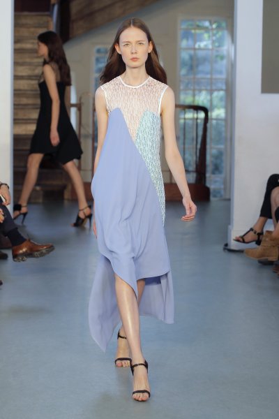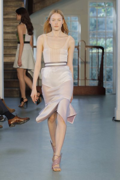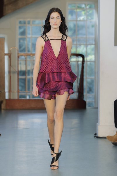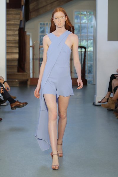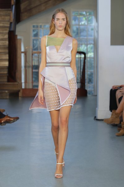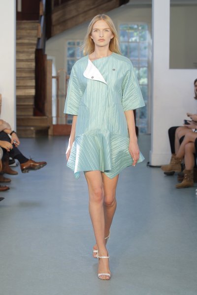As silhuetas são sedutoras e “flirty”, como saídas de uma “pool party”, de um ambiente fresco e descontraído. As peças, com formas subtilmente desportivas, inspiradas em fatos de banho retro, misturam com vestidos cocktail para um look chique e elegante.