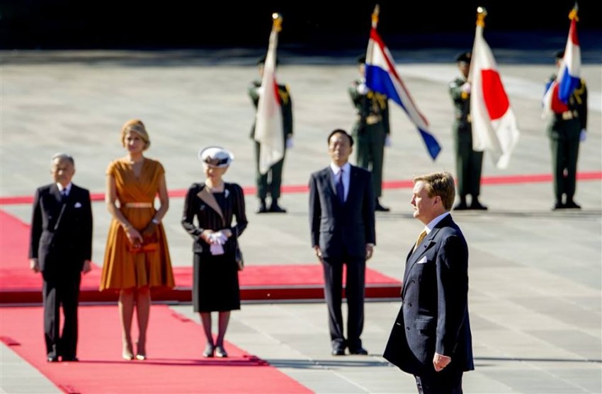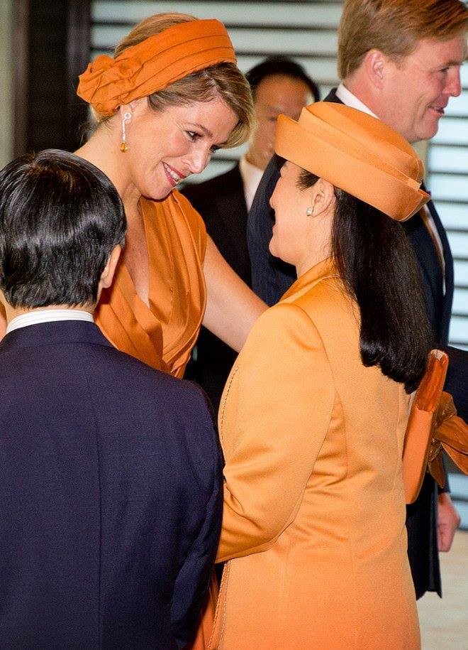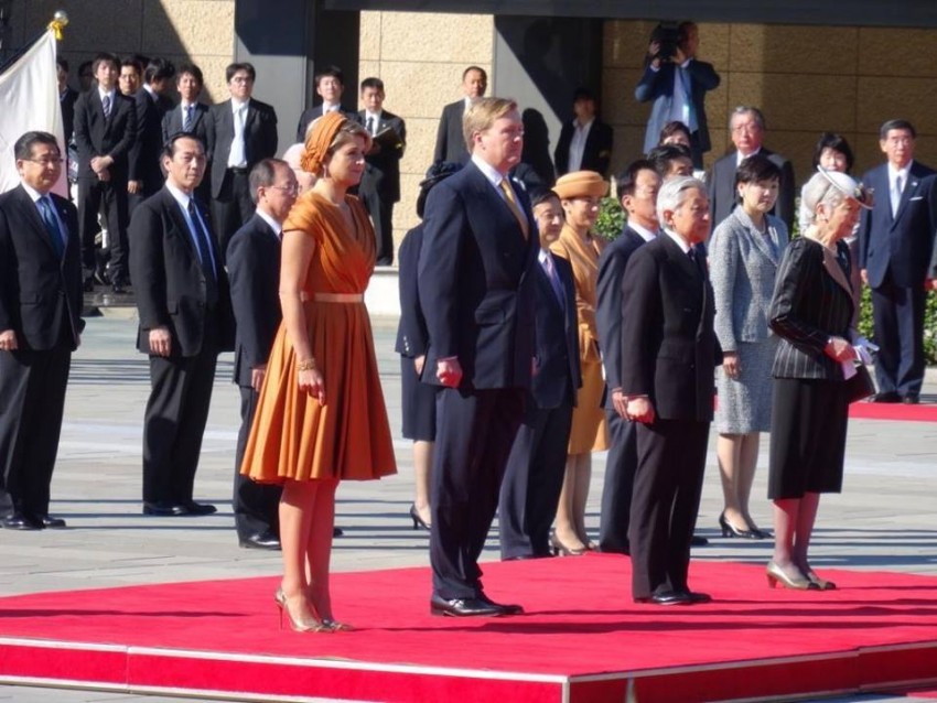 Os reis tiveram direito a uma receção com pompa e circunstância na no Palácio Imperial, em Tóquio, seguindo depois um almoço. Coincidentemente, a princesa Masako e a rainha escolheram a mesma cor para a indumentária: o laranja, a cor nacional da Holanda.