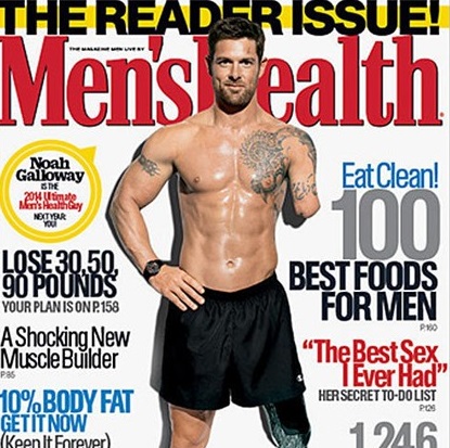 O veterano cumpriu os critérios da publicação, que eram estar em “boa forma física, ser confiante, elegante, ter uma carreira promissora e ser um pilar na sua comunidade”. Noah Galloway superou largamente a competição, apesar dos membros amputados.