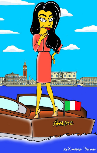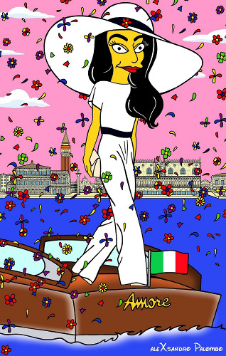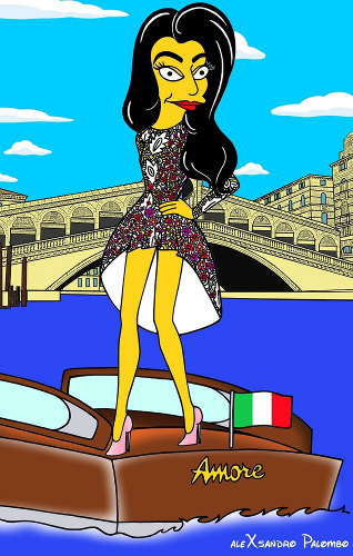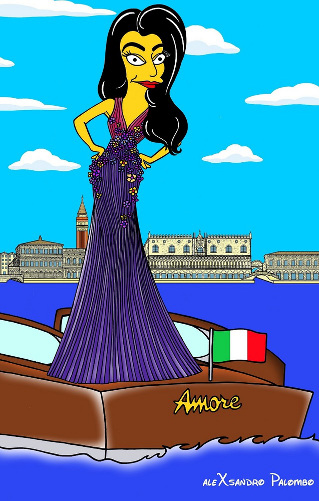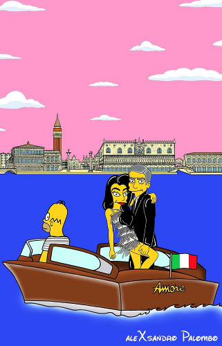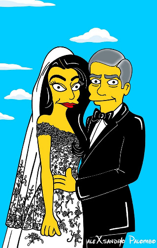 Depois de membros da realeza, o artista Alexsandro Palombo transformou desta vez George Clooney e Amal Alamuddin em personagens dos Simpsons.