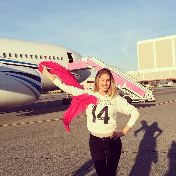 As beldades usaram camisolas iguais, nas quais se lia “Angel 14”, e ao que parece provocaram alvoroço na pista do aeroporto JFK.