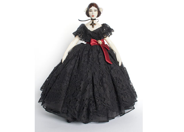 Violetta, assim se chama a boneca, é feita em porcelana e tem o rosto pintado à mão. No vestido de renda preta com cinto em cetim vermelho, onde sobressai uma pregadeira de cristal inspirada na personagem principal da ópera La Traviata, de Giuseppe Verdi, é bem evidente o estilo Dolce & Gabbana.