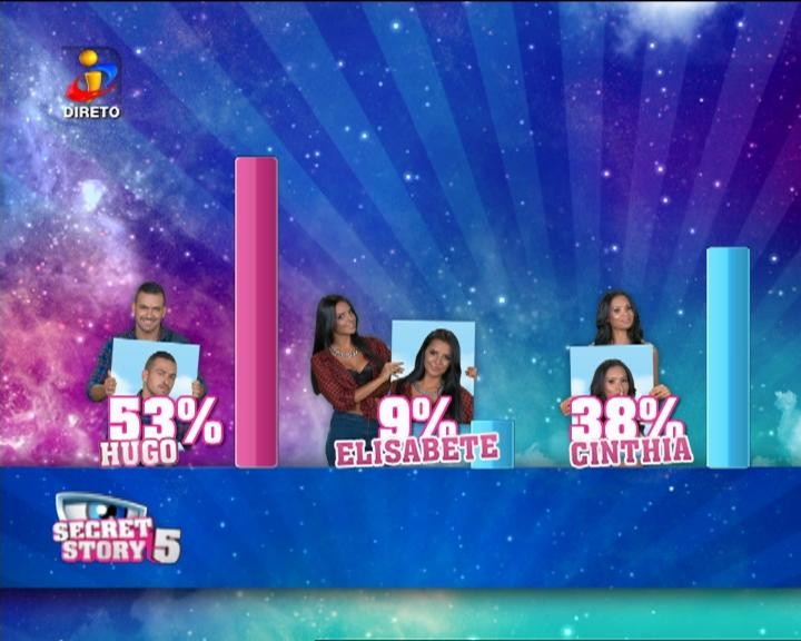 Hugo foi o escolhido pelos portugueses com 53% dos votos, contra os 38% da Cinthia e os 9% da Elisabete para sair da “Casa dos Segredos”.