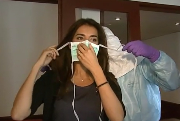 Catarina Furtado simulou hoje ter sintomas comuns à infeção pelo vírus Ébola — febre, dores de cabeça e dores musculares — registados após ter passado pela Serra Leoa.
